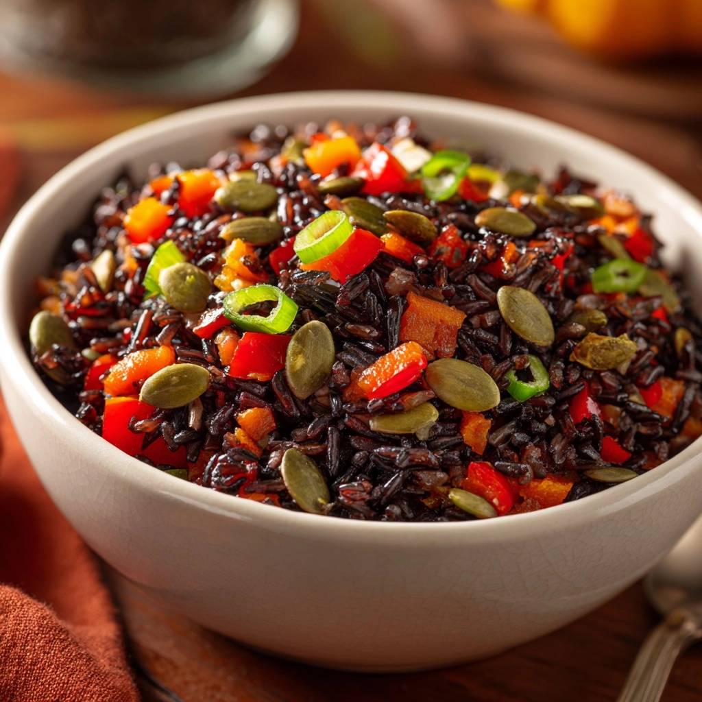 Stell dir vor, du löffelst eine Gabel voll tiefschwarzem, glänzendem Reis, der beim Kauen einen fast schon knackigen Widerstand bietet. Es schmeckt intensiv nussig, fast wie frisch geröstetes Getreide, kombiniert mit der süßen Frische von Paprika.
