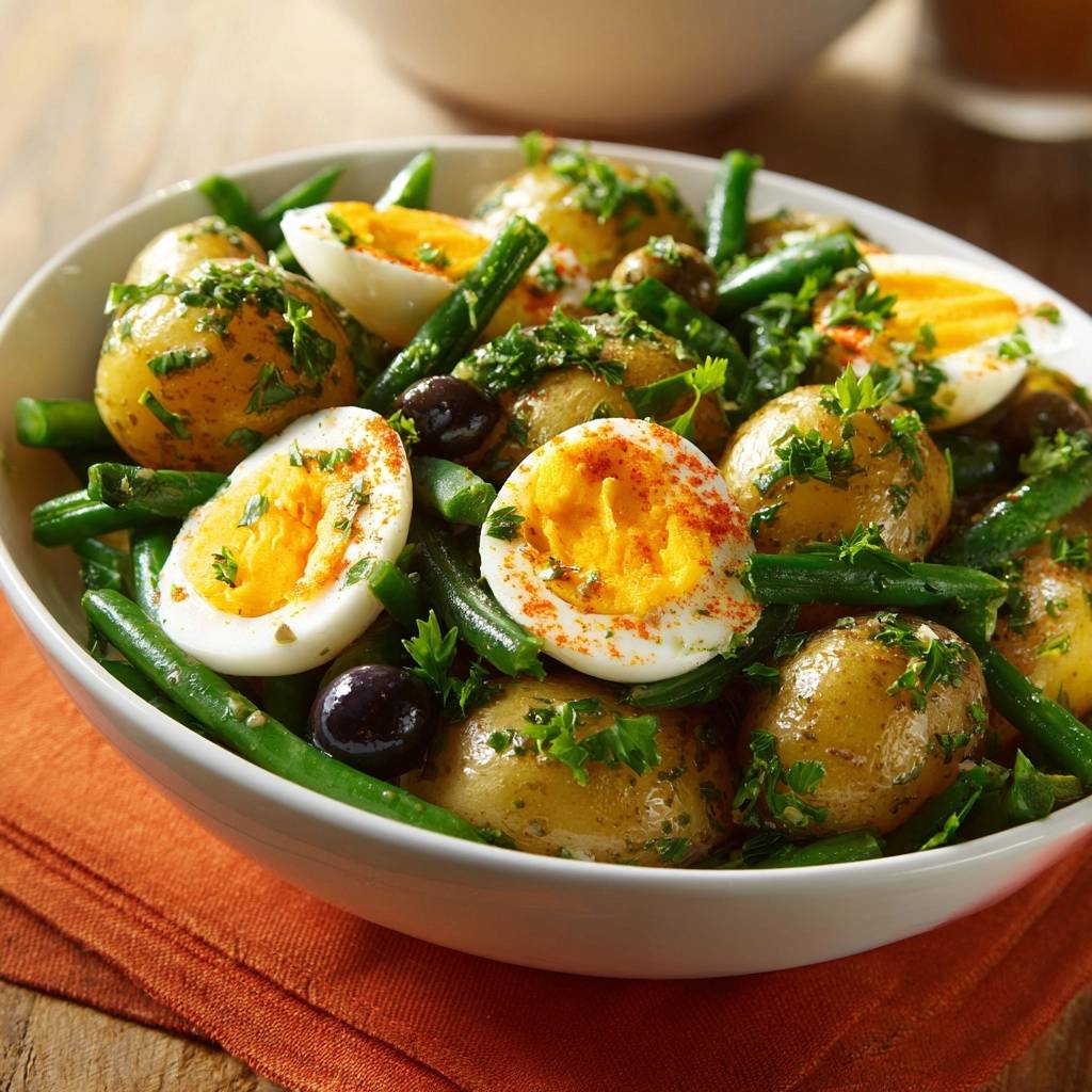 Du kannst die Kartoffeln und Bohnen vorbereiten, aber ich empfehle, die Eier frisch zu kochen und erst kurz vor dem Servieren dazuzugeben. So bleiben sie optisch ansprechend und das Eigelb behält seine schöne Konsistenz.