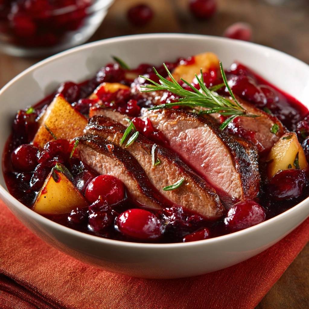 Saftige Entenbrust mit Preiselbeer-Apfel-Soße – Rezept