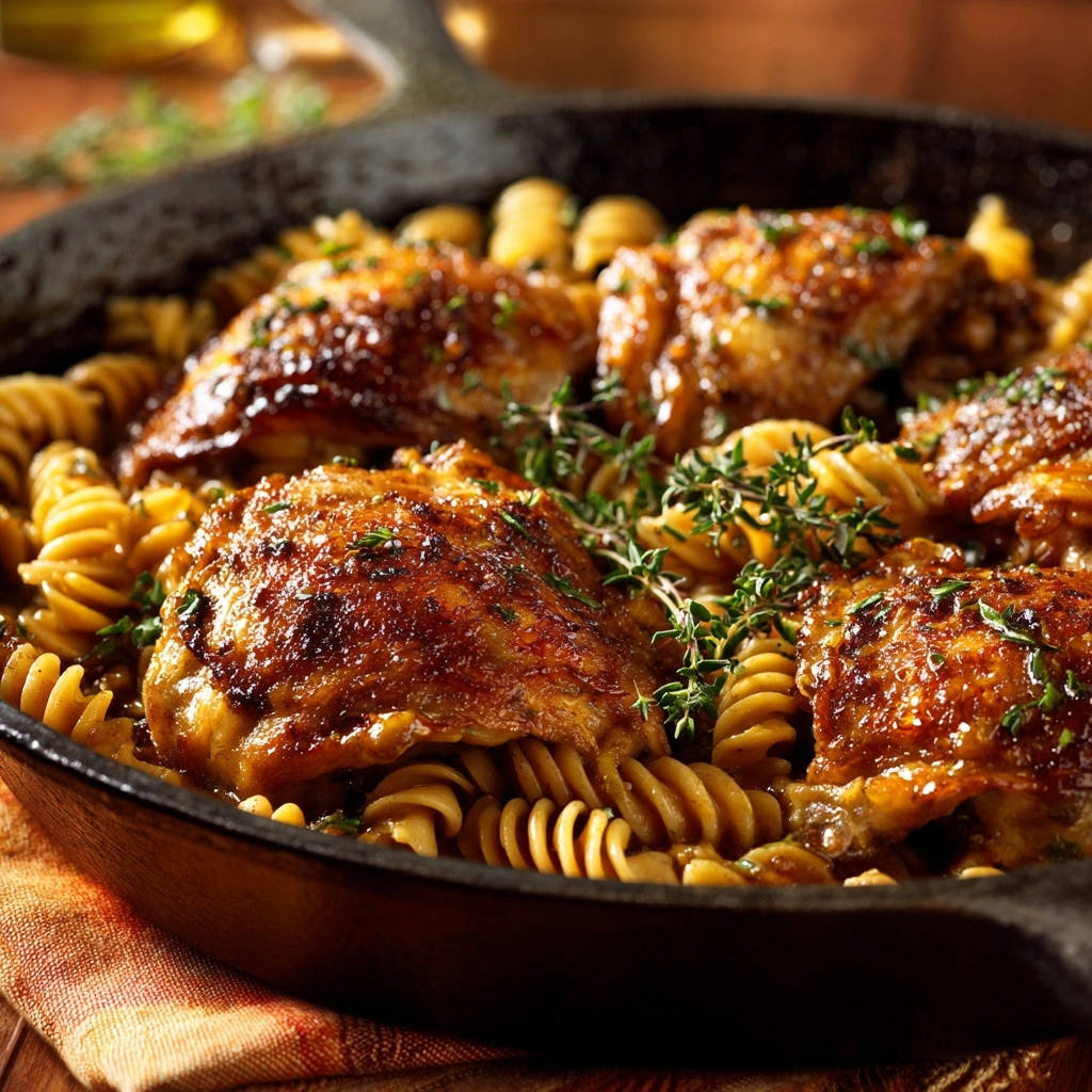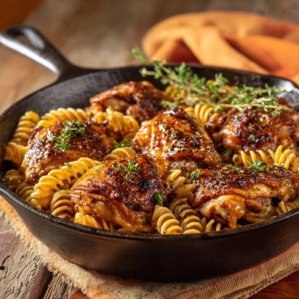 Saftige Hähnchenschenkel & One-Pan Fusilli: Müheloser Genuss aus einer Pfanne