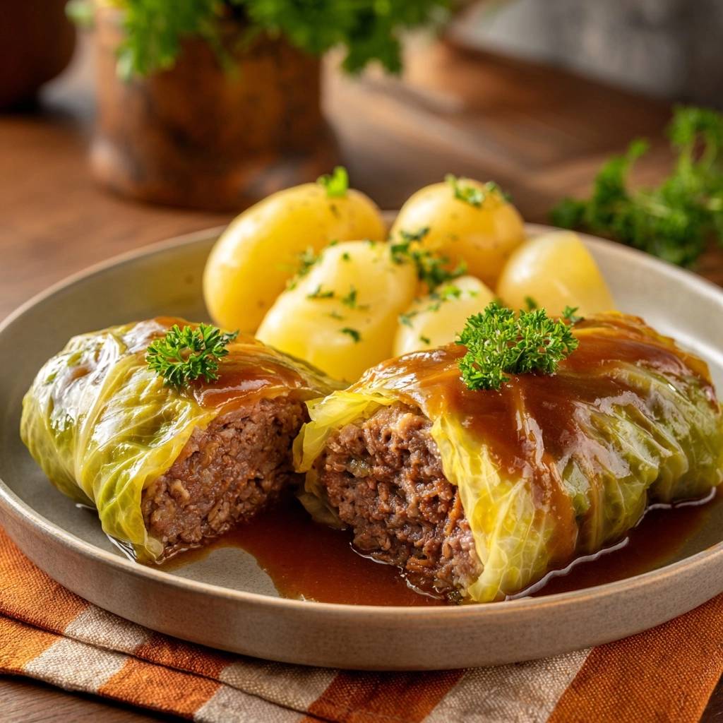 Saftige Kohlrouladen mit Sauce und Kartoffeln