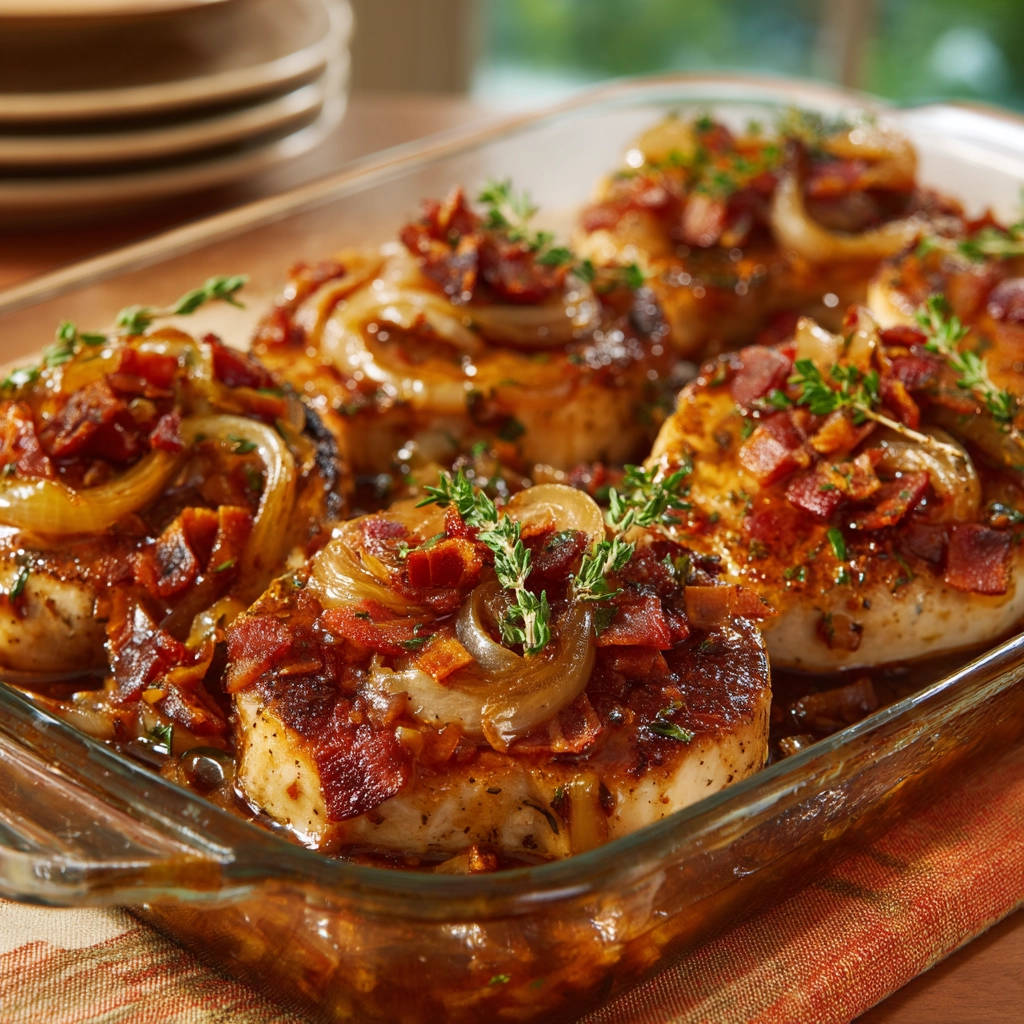 Dieses Gericht ist der beste Beweis dafür, dass saftiges Fleisch aus dem Ofen kein Hexenwerk ist. Mit ein paar einfachen Schritten zaubert ihr ein unglaublich aromatisches Essen, das wirklich jeden glücklich macht. Das Zusammenspiel aus zartem Fleisch, süßen Zwiebeln und knusprigem Speck ist einfach unwiderstehlich.