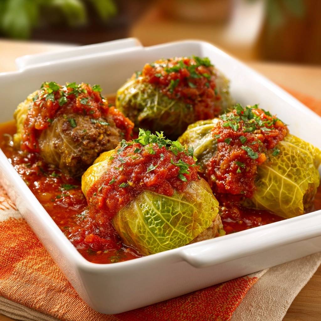 Stell dir vor, du hebst den Deckel vom Topf, und da liegen sie: prall gefüllte Rinder-Kohlrouladen in sämiger Tomatensoße. Der Duft von gebratenem Hackfleisch, Knoblauch und Paprika zieht durch die Küche. Beim ersten Bissen platzt die Füllung saftig im Mund, der Kohl umhüllt alles weich und knackig zugleich.