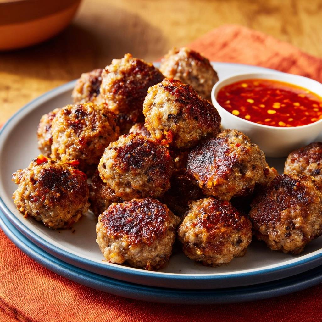 Saftige Rindfleisch-Bällchen mit Chili-Dip