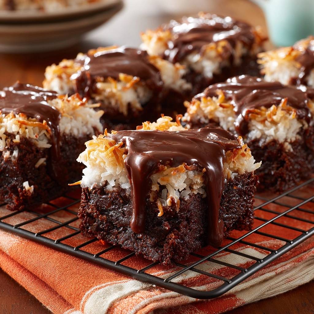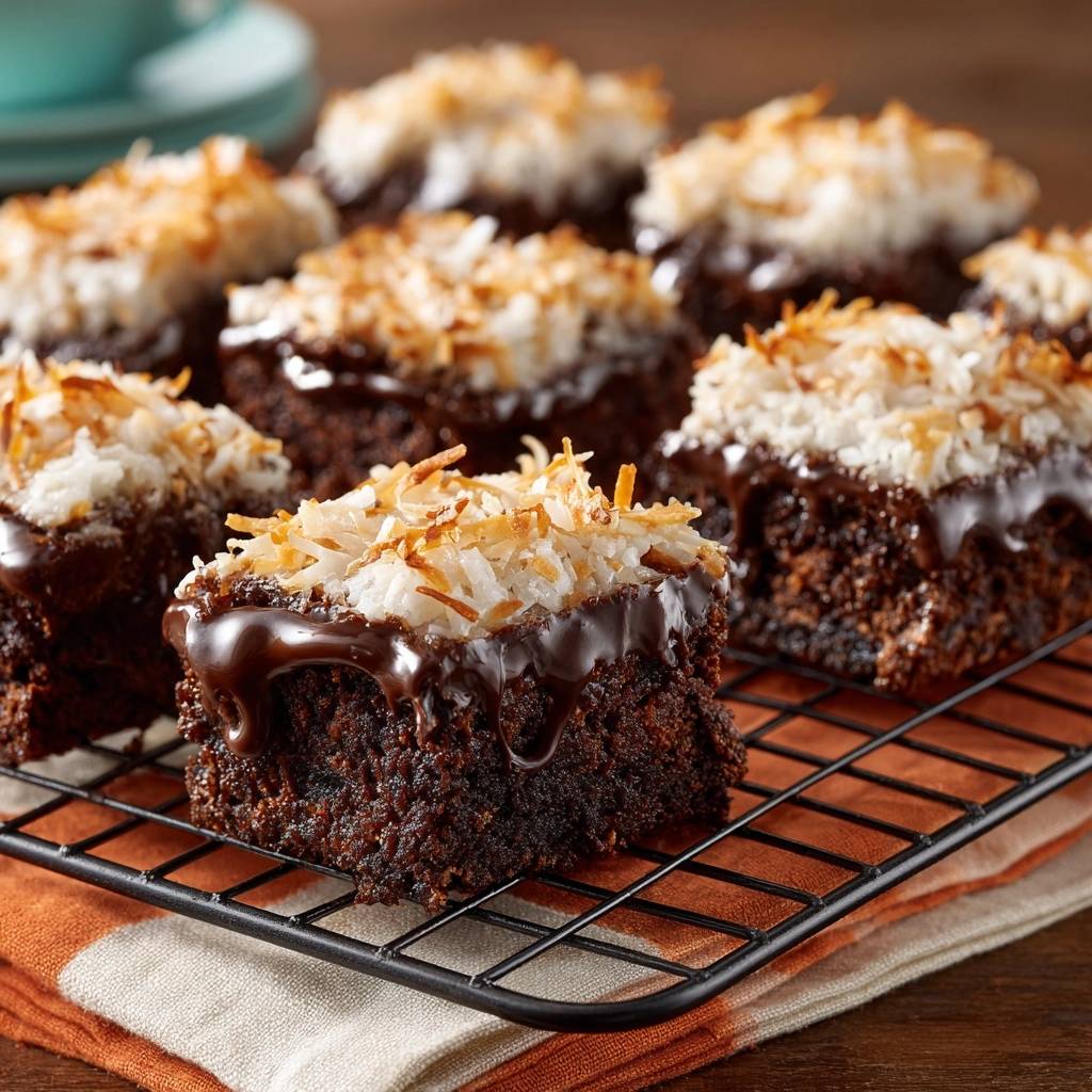 Stell dir vor, du beißt in ein Stück Kuchen, das so unglaublich saftig ist, dass es fast auf der Zunge schmilzt. Genau das passiert bei diesen Schnitten. Die Kombination aus dunkler Schokolade und exotischer Kokosnuss erinnert sofort an einen bekannten Riegel, nur viel besser und frischer.
