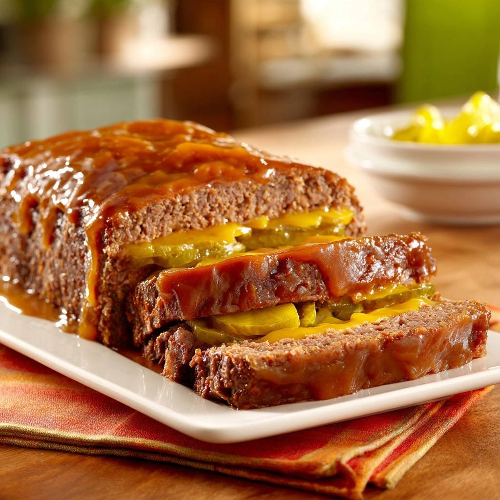 Saftiger Burger-Hackbraten mit Käse-Gurken-Füllung: Das Geheimnis für lockere Bissen