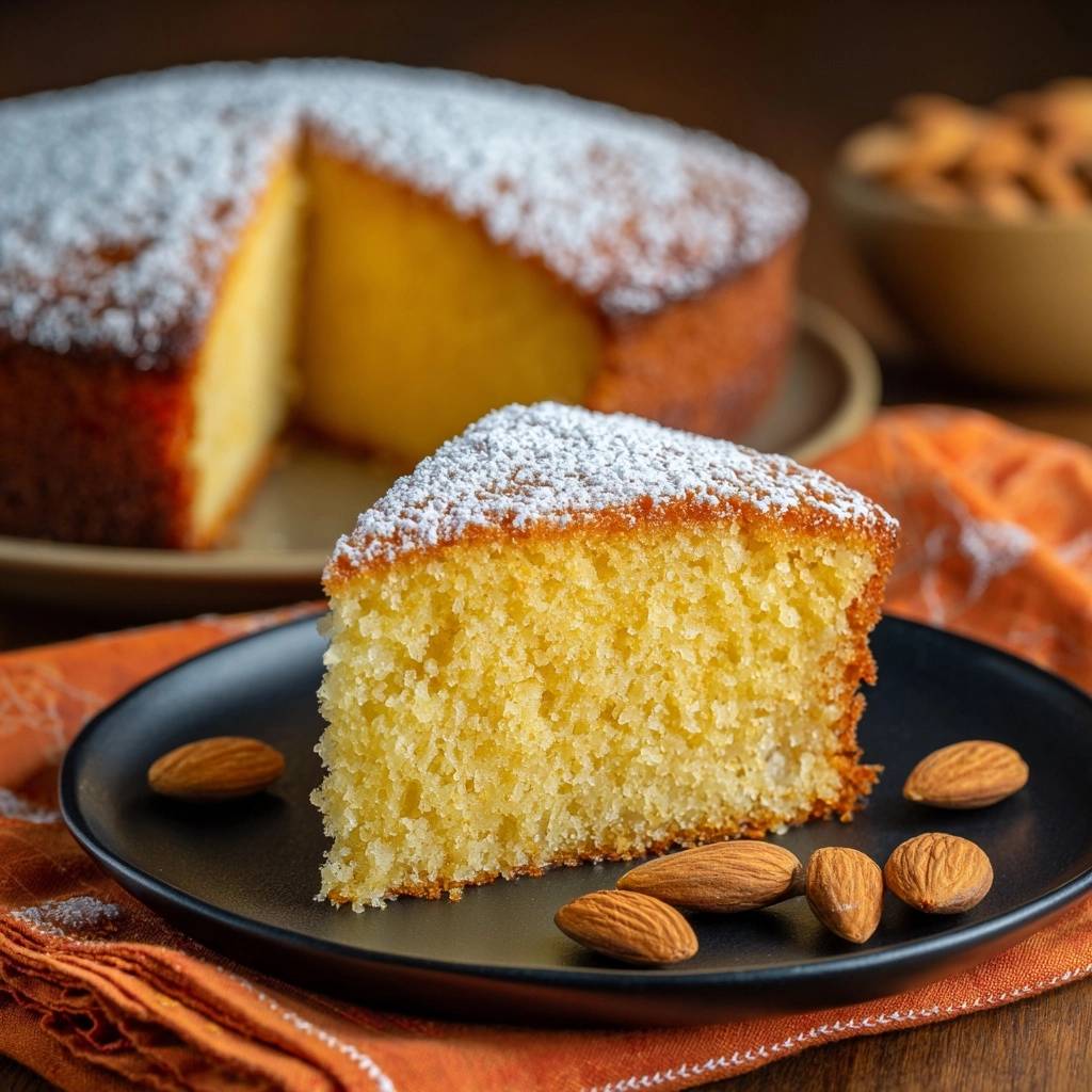 - Kuchen mit Puderzucker bestäuben, mit ganzen Mandeln garnieren. Fertig – saftig, fluffig, unwiderstehlich!