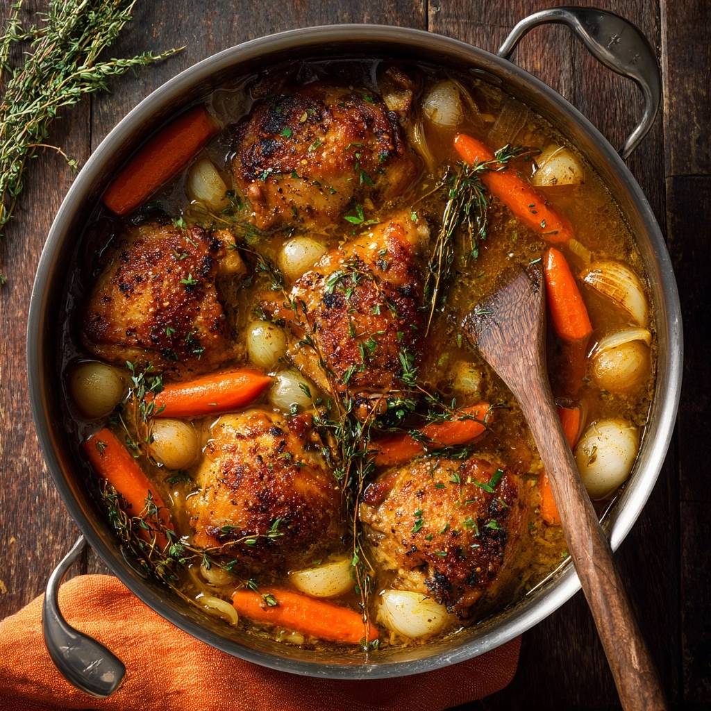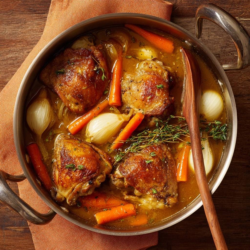 Stell dir vor, du hebst den Deckel vom Topf, und dieser Duft von gebratenem Hähnchen mit Thymian umhüllt dich. Der erste Bissen: Knusprige Haut, zartes Fleisch, das im Mund zerfällt, und süßliche Karotten, die perfekt saftig geköchelt sind. Ich hab das Gericht gestern Abend gemacht, und es war wieder ein Volltreffer.