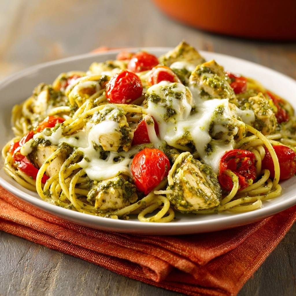 Stell dir vor, du beißt in saftiges Hähnchen, das in cremigem Pesto badet, umhüllt von al dente Spaghetti und knackigen Tomaten. Die Burrata zerläuft gerade so, dass sie alles veredelt. Dieser Duft von frischem Basilikum? Der macht dich sofort hungrig.