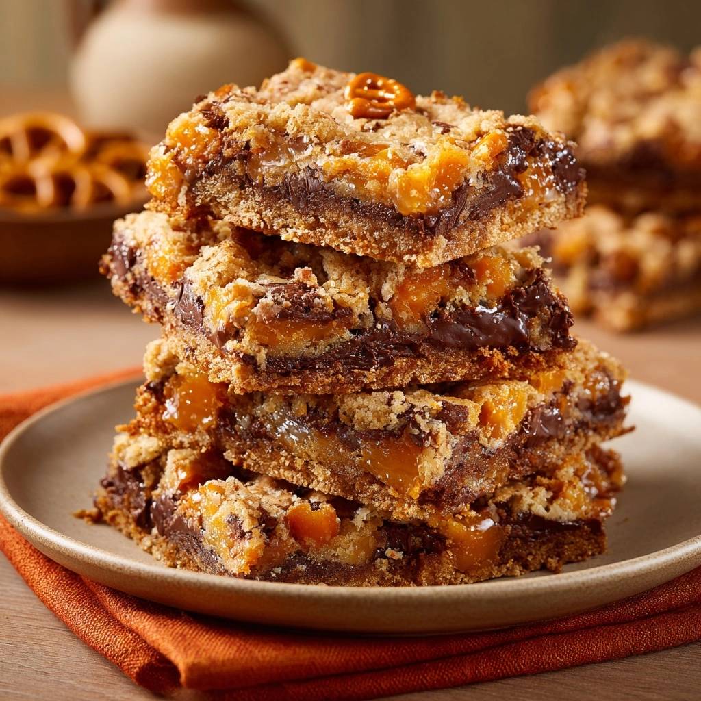 Stell dir vor, du knackst durch knusprigen Brezelstreusel, tauchst ein in cremige dunkle Schokolade und landest in weichem, salzig-süßem Karamell, das sich perfekt schneiden lässt. Der erste Bissen explodiert im Mund: Salz knistert gegen Süße, Texturen wechseln von hart zu weich. Ich hab jahrelang mit Karamell gekämpft, das nach dem Auskühlen steinhart wurde und alles zerbröselte.