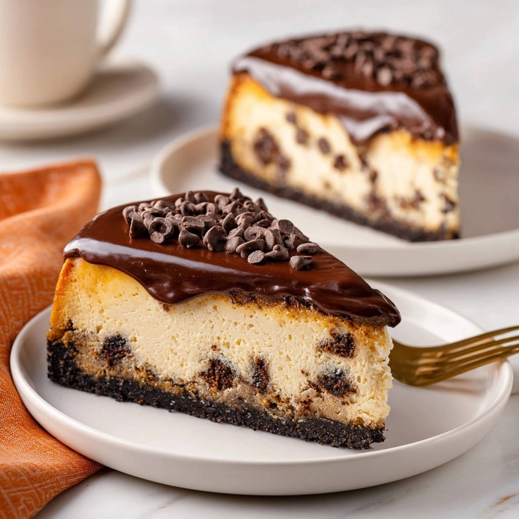Genieße deinen hausgemachten Schoko-Chip Käsekuchen!