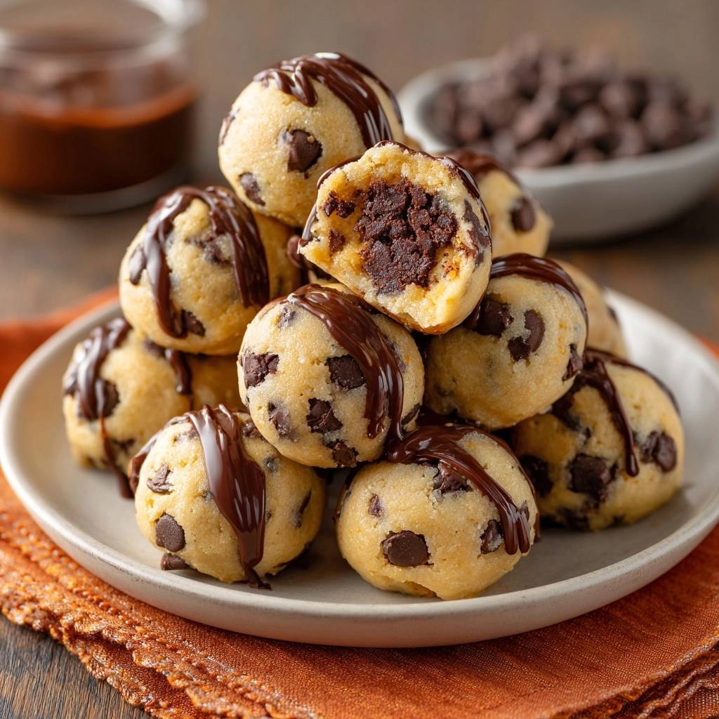 Mehr kühlen oder Hände mit kaltem Wasser befeuchten. Brauner Zucker macht feucht, Kühlung stabilisiert Gluten. So formen sich Schoko-Lava-Cookie-Bites mühelos rund.