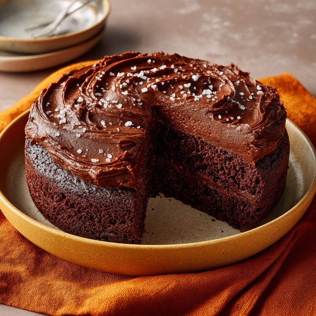 Stell dir vor, du beißt in diesen Schokoladenkuchen mit Meersalz-Frosting. Die Krume ist so fluffig und saftig, dass sie fast schmilzt. Der Kakao duftet intensiv, und dann knacken die Salzflocken auf der Zunge – süß und salzig im perfekten Mix.