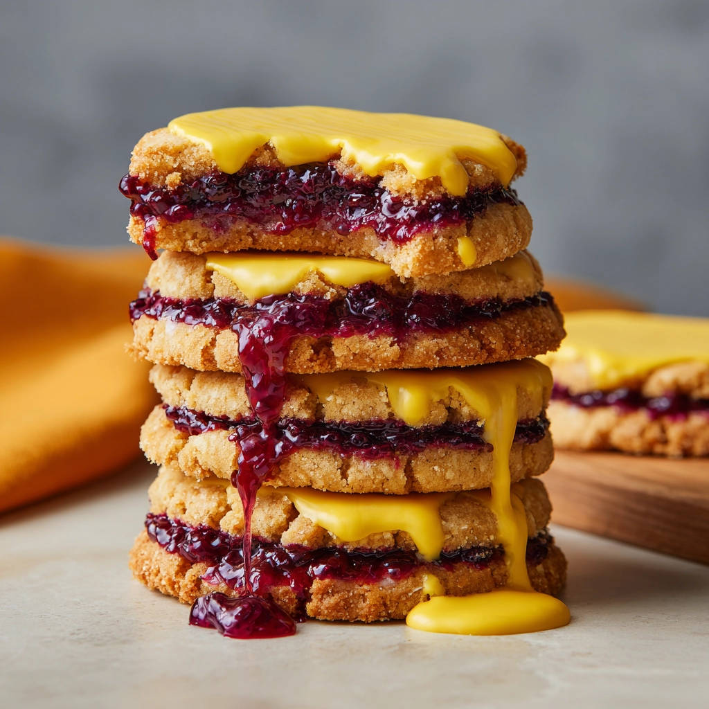 Stapel-Kekse mit Beerenfüllung und Zitronenglasur