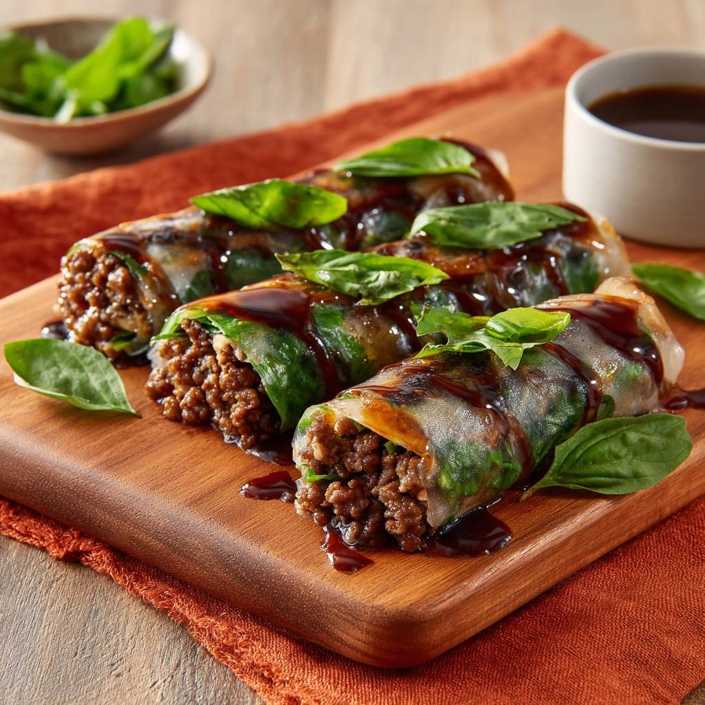 Diese Thailändische Basilikum-Hack-Rollen sind super einfach zuzubereiten: Nur 20 Minuten, für 8 Portionen als Snack oder Vorspeise. Schwierigkeit? Total kinderleicht, auch wenn du neu beim Rollen bist. Pro Rolle ca. 150 kcal, low-carb und proteinreich. Perfekt für Partys oder wenn du was Leichtes, Würziges brauchst. Das Geheimnis liegt im saftigen Hack, das durch hohe Hitze schön krümelig bleibt, und im Basilikum, das frisch und duftend alles aufpeppt.