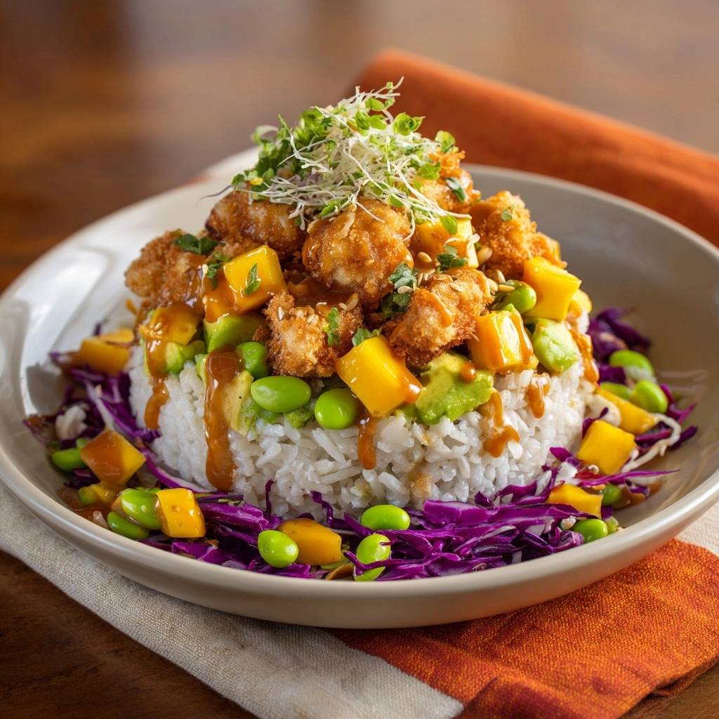 Ich hab unzählige Varianten ausprobiert, bis dieser Doppelt-Panier-Trick perfekt saß. Er kommt aus hawaiianischen Poke-Traditionen, wo Frische und Crunch zählen. Hier wird’s familientauglich, gesund und low-carb anpassbar, wenn du den Reis weglässt. Die Bowl explodiert vor tropischen Aromen, ohne kompliziert zu sein.