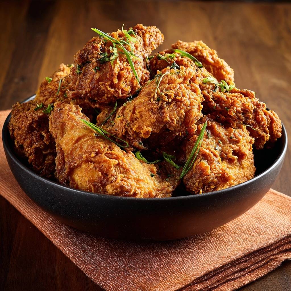 Der Biss in dieses ultra-knusprige paniertes Hähnchen ist pure Freude. Die goldene Kruste knackt laut und gibt zarte, saftige Schenkel frei, die nach Paprika und Knoblauch duften. Jeder Bissen explodiert im Mund, ohne dass die Panade nach dem Abkühlen matschig wird.