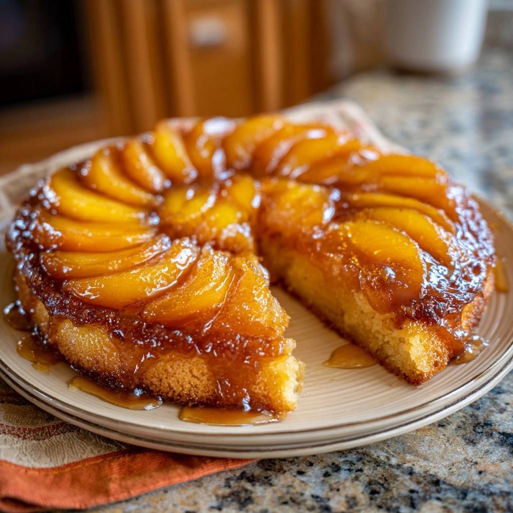 Stell dir vor, du beißt in den ersten saftigen Pfirsichstück, das in goldbraunem Karamell glänzt, und darunter wartet fluffiger Teig, der perfekt aufgeht. Der Duft von karamellisierten Früchten zieht durch die Küche, sommerlich süß und einladend. Ich hab das so oft gebacken, dass ich den Moment kenne, wenn der Kuchen aus der Form gleitet, ohne einen Krümel zu verlieren.