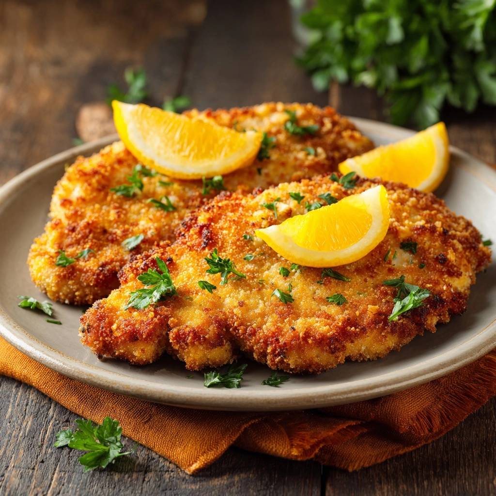 - Mit Zitronenspalten und gehackter Petersilie servieren. Fertig – knusprig garantiert!