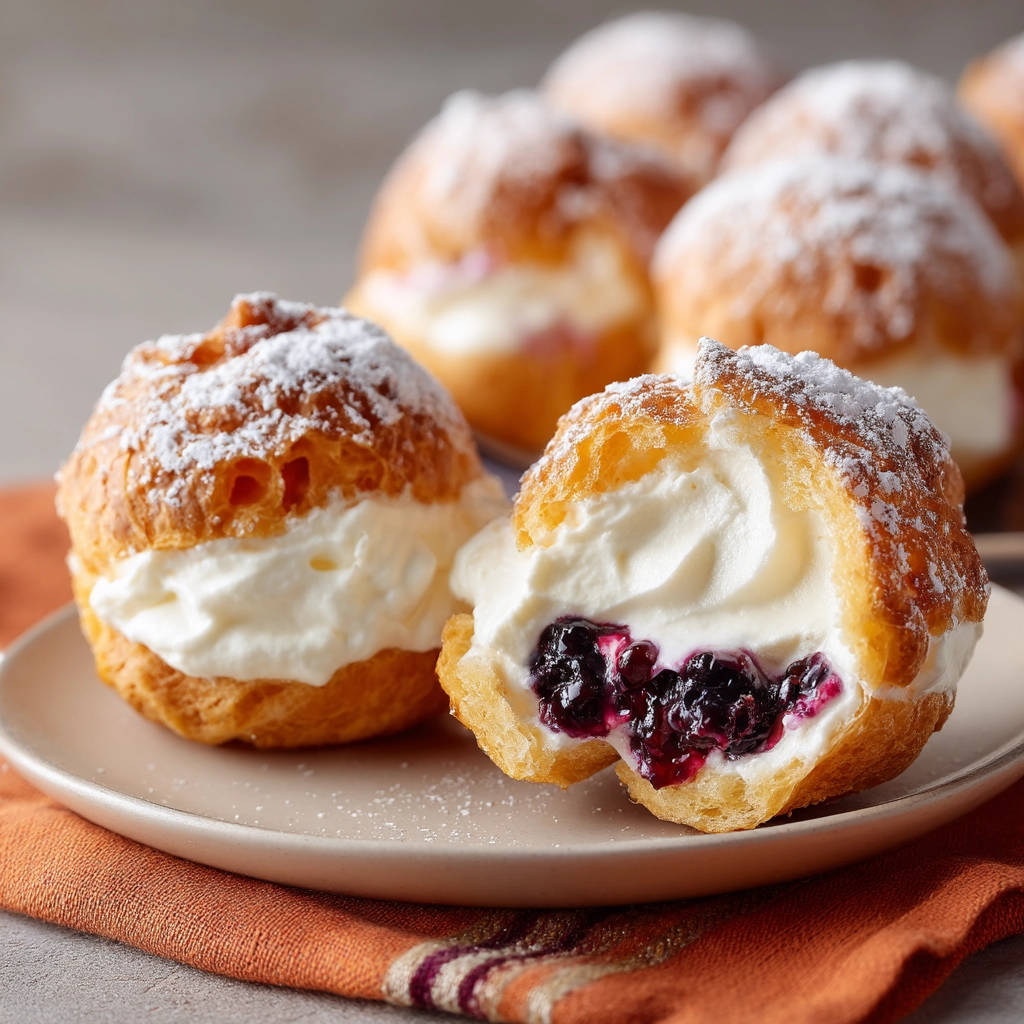 Windbeutel mit Sahne und Beerenfüllung