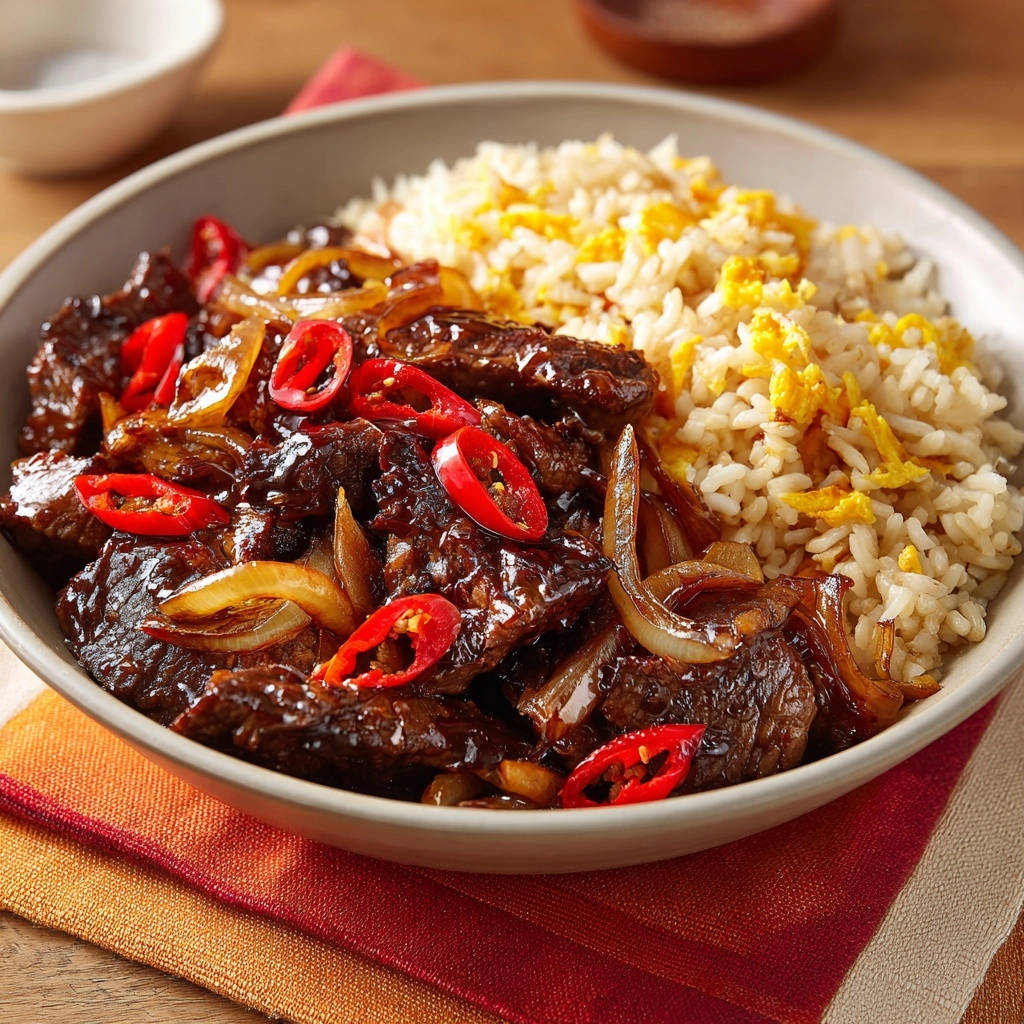 Würziger Rindfleisch-Traum mit Chili und Ei-Reis