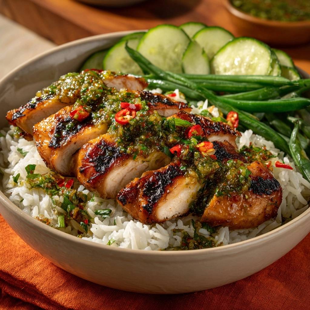 Würziges Chimichurri-Hähnchen auf Kräuterreis