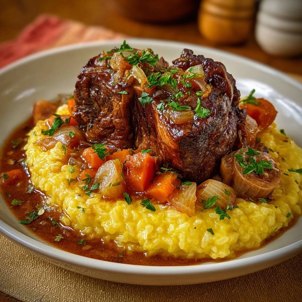 Dieses Gericht ist mein absoluter Favorit für Abende, an denen das Essen eine Umarmung sein soll. Die Kombination aus dem leuchtend gelben, cremigen Reis und dem dunklen, glänzenden Fleisch ist nicht nur optisch ein Highlight, sondern ein echtes Geschmackserlebnis.