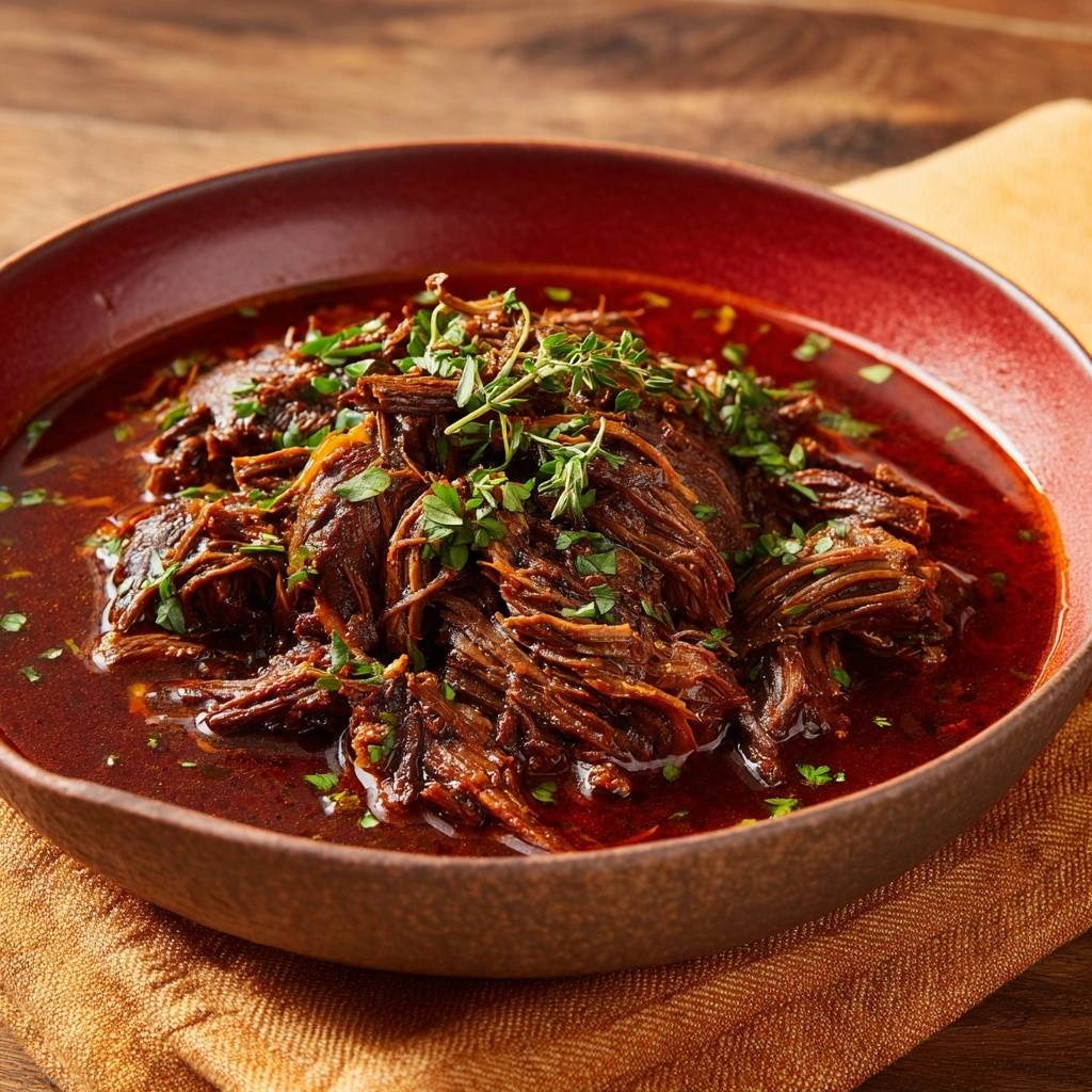 Stell dir vor, du nimmst die erste Gabel dieses Rindfleischragouts in den Mund. Das Fleisch zerfällt butterzart, die Tomatensoße umhüllt es saftig und aromatisch. Der Duft von Thymian und gebratenem Rind steigt auf, und du fragst dich, warum du das nicht früher gemacht hast.