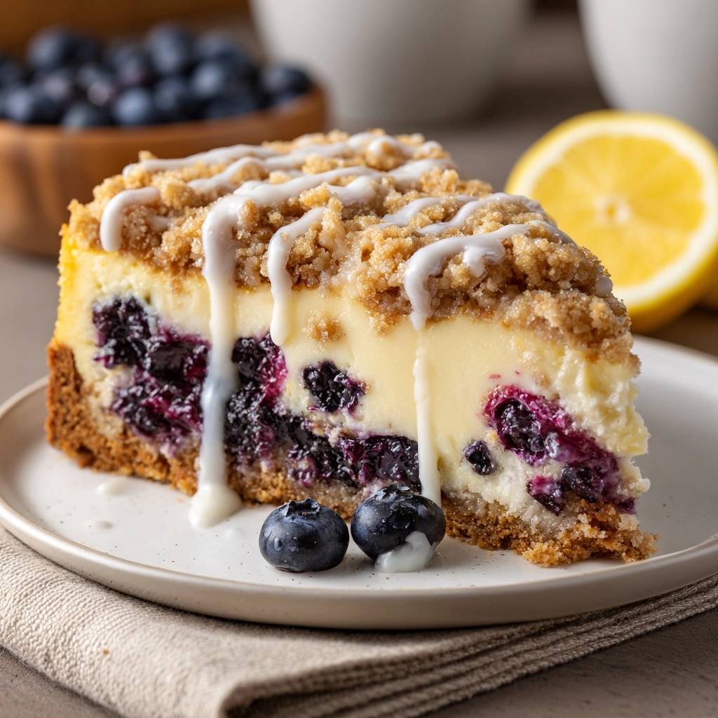 Zitronen-Blaubeer-Käsekuchen mit Streuseln (Der Anti-Matsche-Boden)